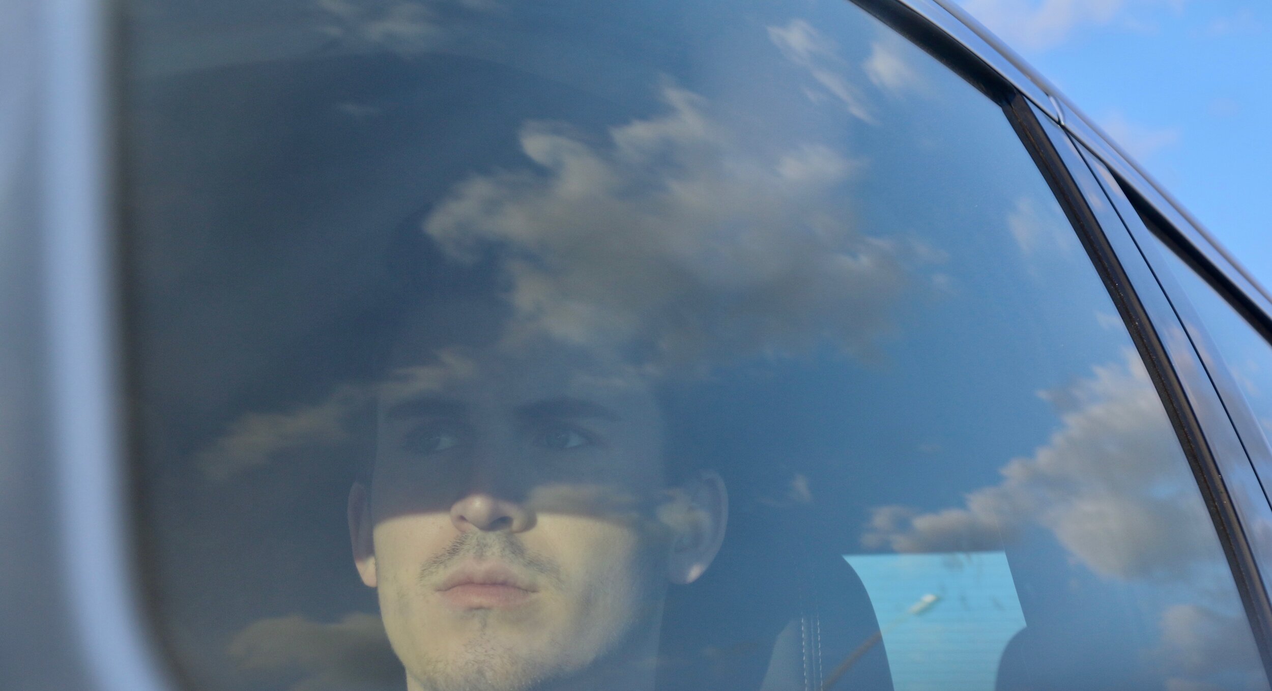 Alone on the bus, looking out the window
